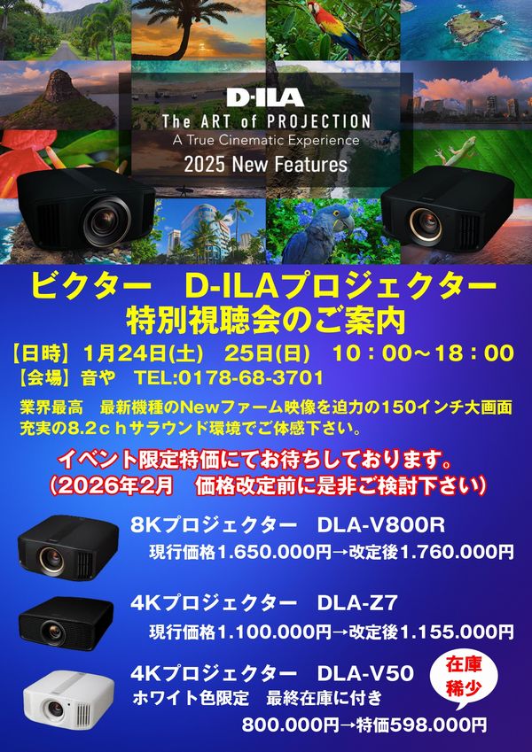 プロジェクター視聴会のお知らせ 1月24(土)25(日)